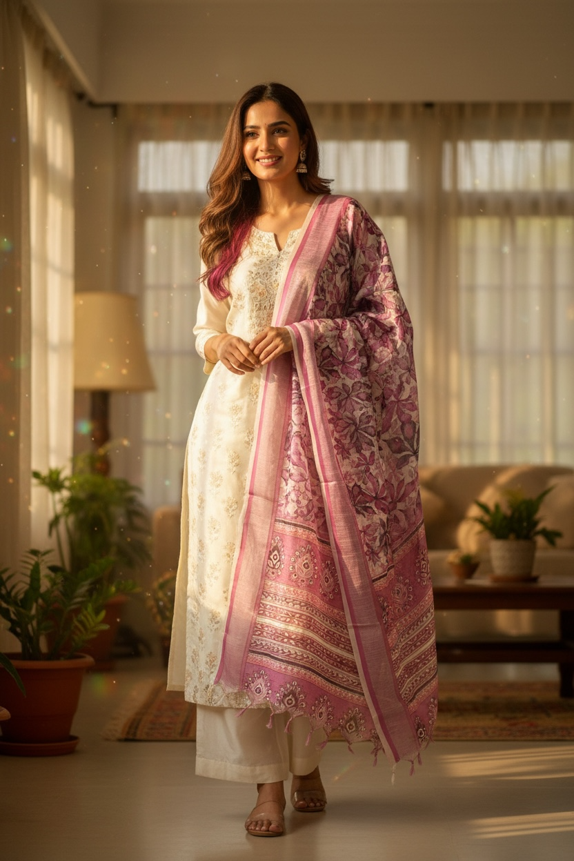 Pair with: ivory or blush ensembles, pearl or rose-gold jewellery, classic juttis.