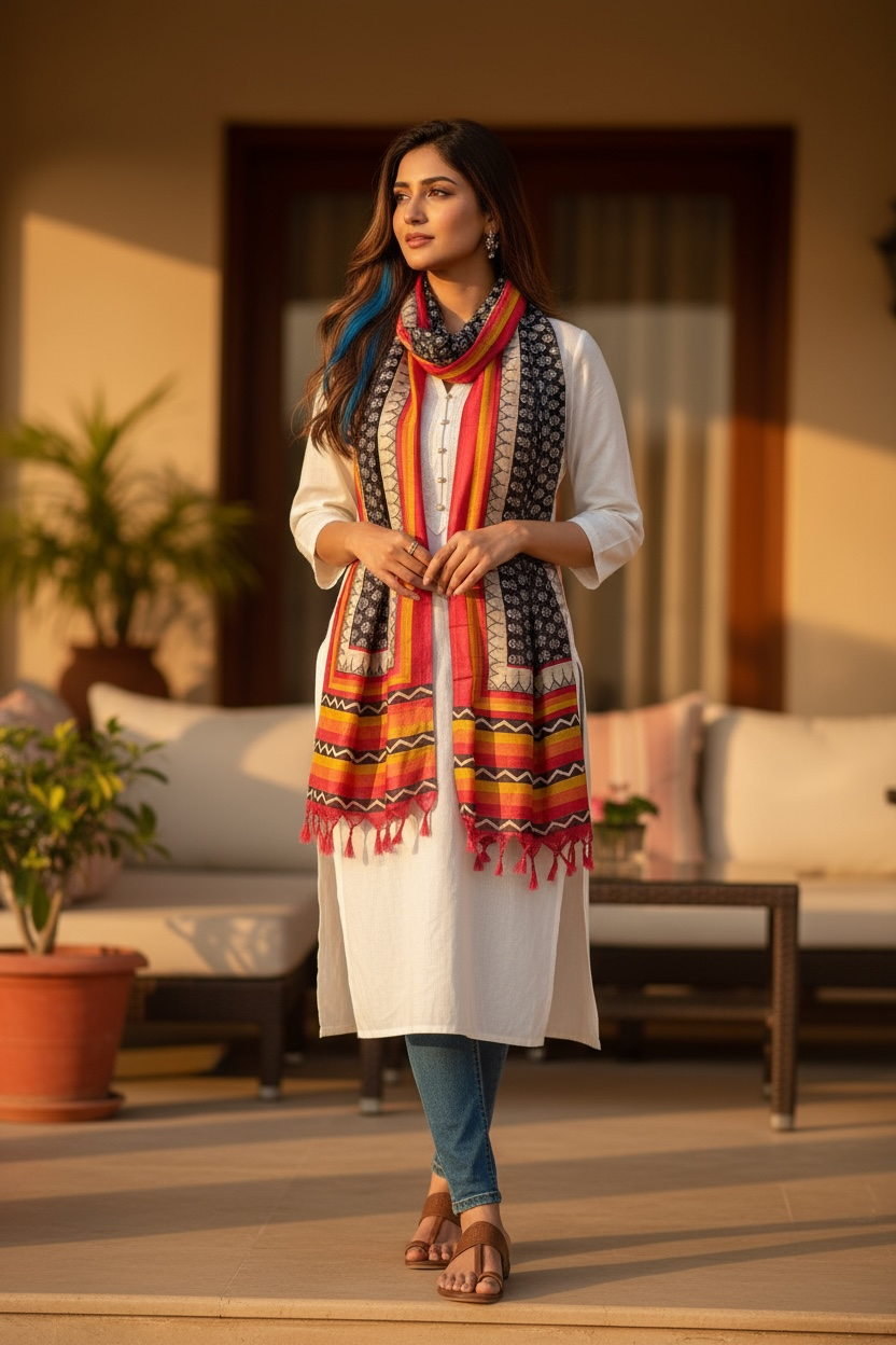 Pair With: Classic white, almond, beige or black kurtas. Teams beautifully with denims for an Indo-western twist. Accentuate with gold hoops or kundan studs and tan sandals.