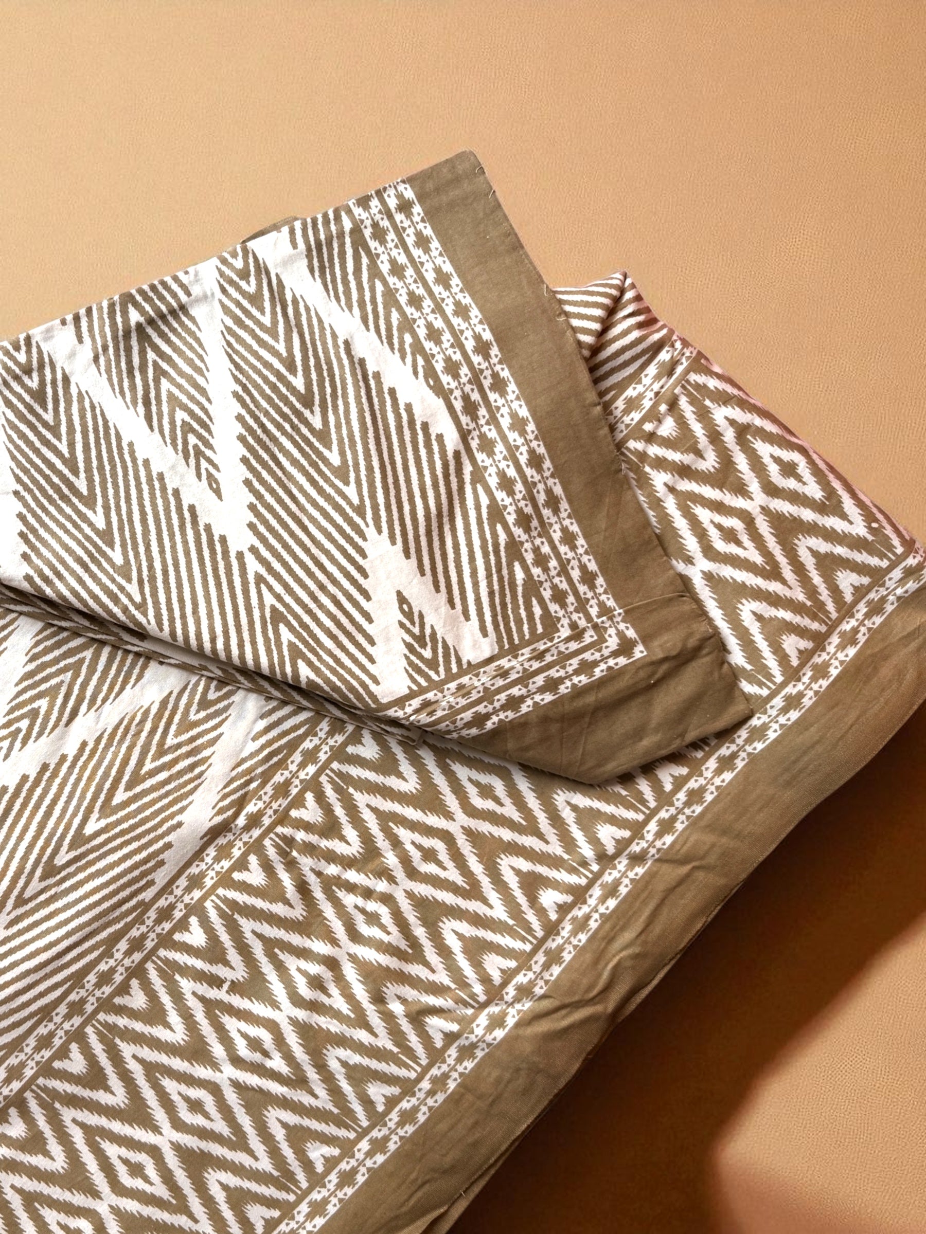 Bold yet grounding, this ikat-inspired pattern carries the warmth of earthy ochre paired with crisp white. The angular motifs and tribal borders tell a story of age-old weaving traditions, reimagined for contemporary homes. Woven in breathable cotton, it’s your invitation to sink into comfort, with a hint of wanderlust woven in every thread.